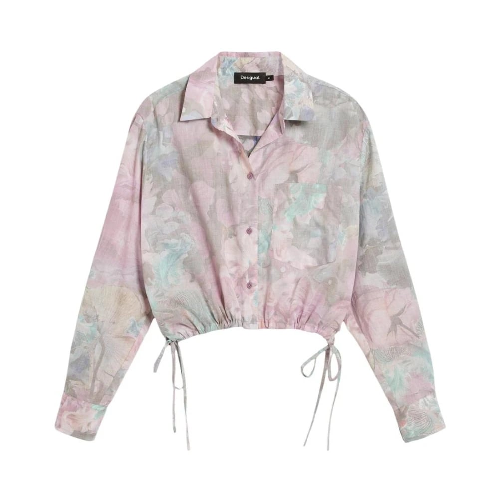 Desigual, Blusar & Skjortor , Dam, XL, Bomull, Blus med blomstermönster i bomull med rund hals och långa ärmar