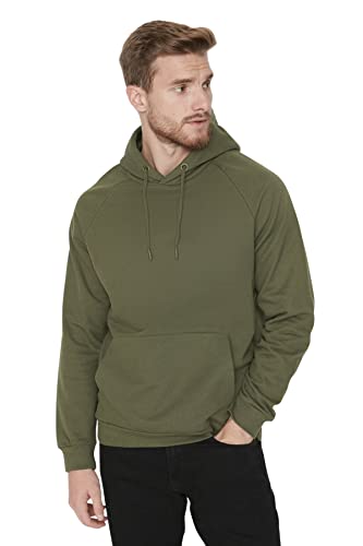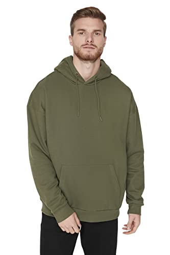 Trendyol herr raka långa ärmar överdimensionerade tröjor, kaki, XXL