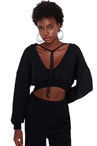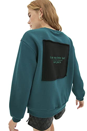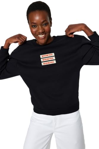 Trendyol kvinnors motto långa ärmar vanliga tröjor, svart, XL