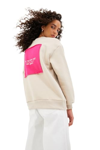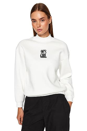 Trendyol kvinnors motto långa ärmar vanliga tröjor, Vit, XL