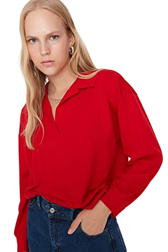 Trendyol Dam raka långa ärmar avslappnade tröjor, röd, M