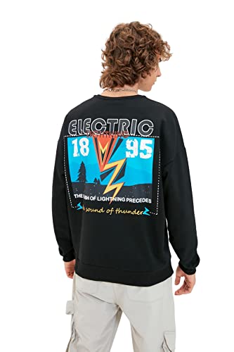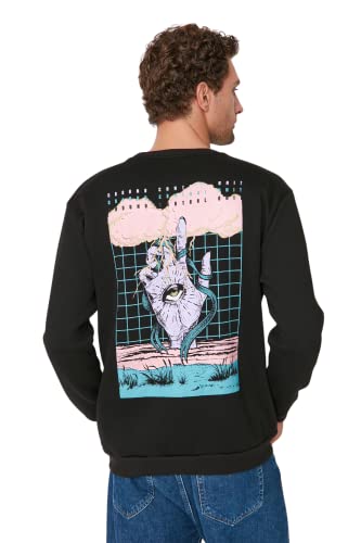 Trendyol herr motto långa ärmar överdimensionerade tröjor, svart, S