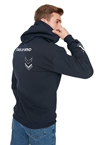 Trendyol herr motto långa ärmar avslappnade tröjor, marinblå, XXL