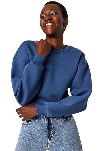 Trendyol Damer raka långa ärmar vanliga tröjor, indigo, XL