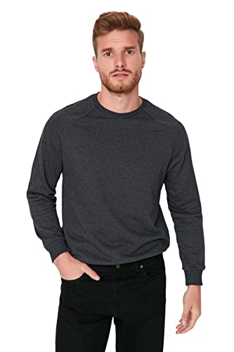 Trendyol herr raka långa ärmar vanliga tröjor, Antracitmelerad, XXL