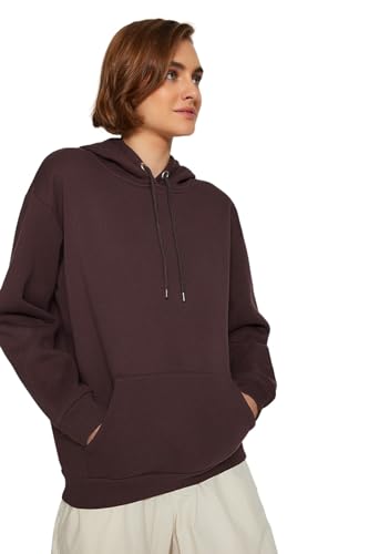 Trendyol Dam raka långa ärmar avslappnade tröjor, BRUN, XL
