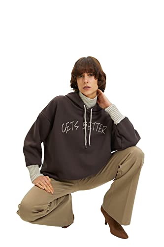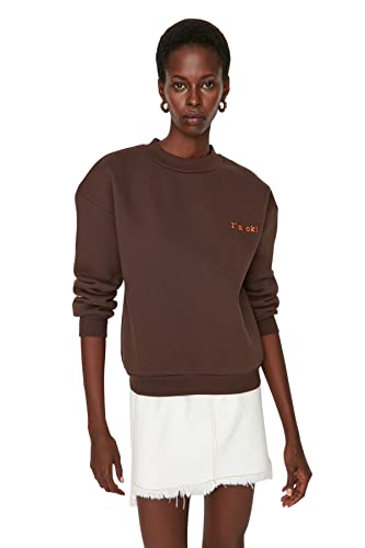 Trendyol Dam motto långa ärmar avslappnade tröjor, BRUN, XL