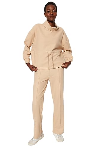 Trendyol Damer raka långa ärmar vanliga tröjor, Beige, L