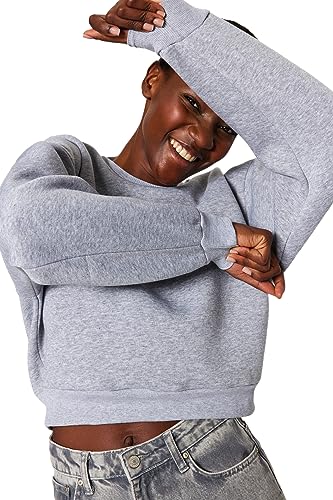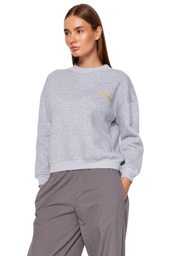 Trendyol kvinnors motto långa ärmar vanliga tröjor, grå, XL