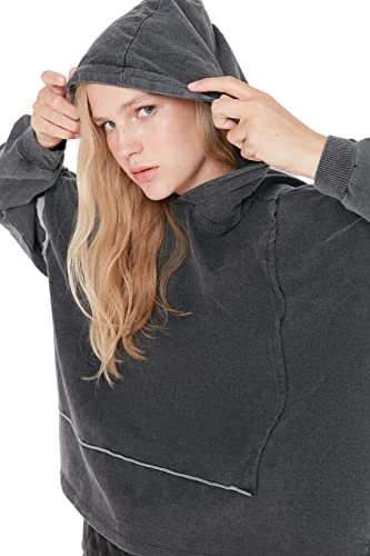 Trendyol Dam raka långa ärmar avslappnade tröjor, antracit, XS