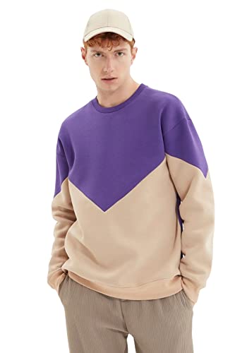 Trendyol herr färgblock långa ärmar vanliga tröjor, lila, L
