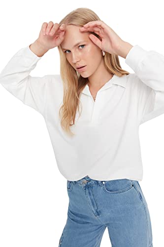Trendyol Dam raka långa ärmar avslappnade tröjor, Vit, XL