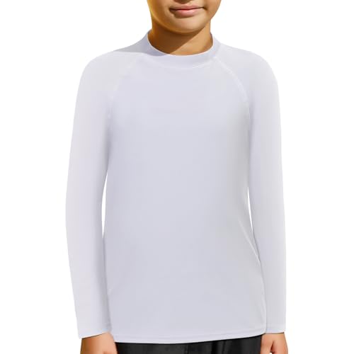 MASOCIO Anti-UV T-shirt för barn pojke långärmad baddräkt T-shirt solskydd UPF 50+ snabbtorkande för simning strand pool 4–14 år, Vitt och blått, 6 ans