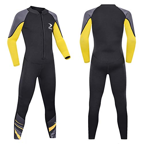 ZCCO Barn våtdräkt, 2,5 mm neopren termisk baddräkt, ungdom pojkar och flickor one piece våt kostymer varm långärmad baddräkt för dykning, simning, surfing (svart, XS)