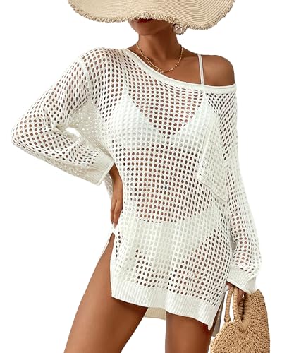 Bsubseach stickat täckplagg dam, täckplagg för baddräkt, långärmad, strand, B-vit, En Storlek