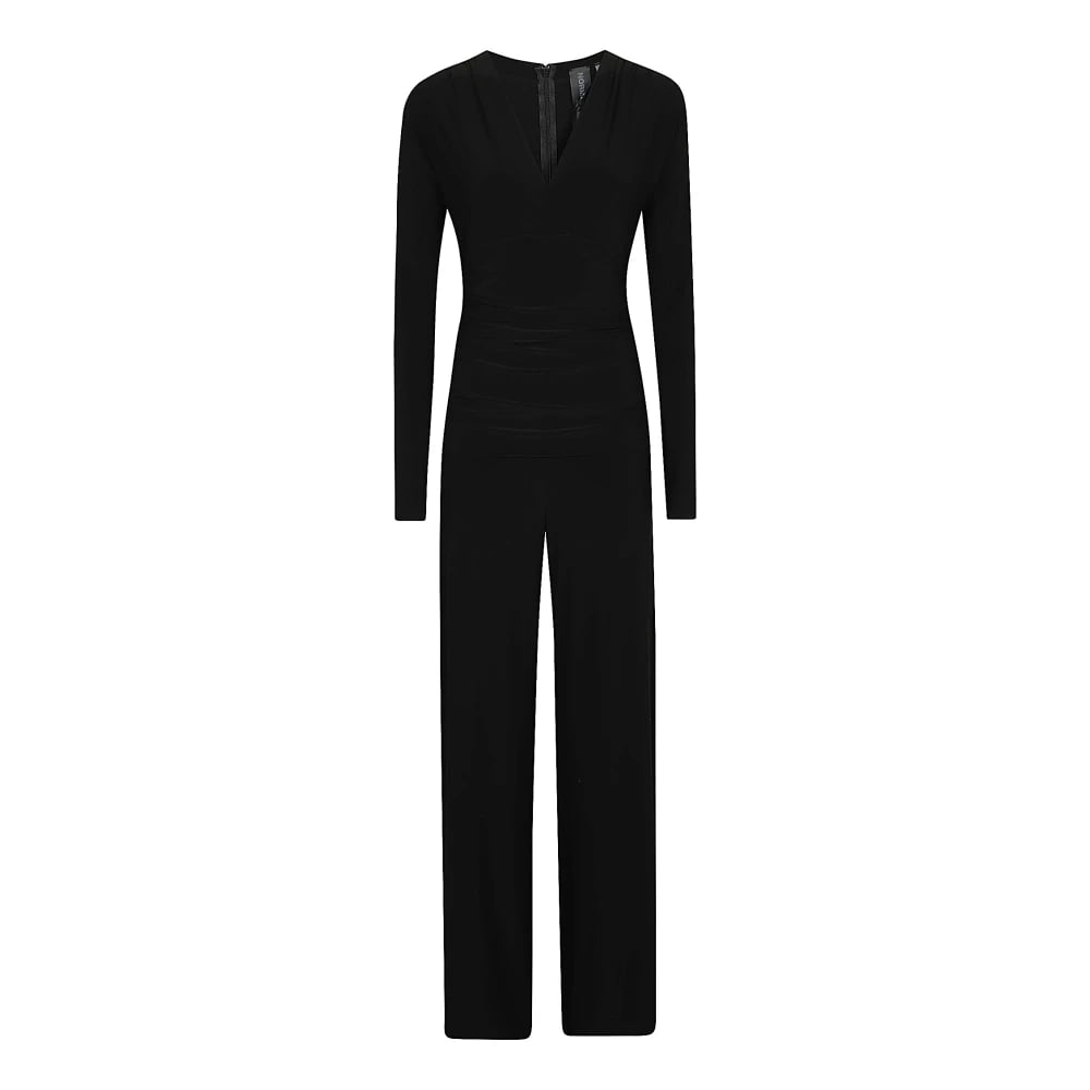Norma Kamali, Byxdress , Dam, M, Polyester, V-ringad långärmad jumpsuit med smock i midjan