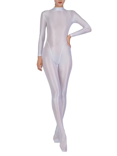 Full bodysuit dam långärmad endelad jumpsuit lycra spandex Zentai Unitard, Vitt, L
