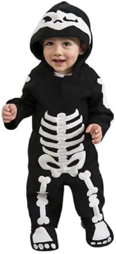 RUBIES - Officiell karnevalsdräkt för barn, svart, långärmad jumpsuit med skeletttryck och huva, storlek 2–3 år - karneval, baby