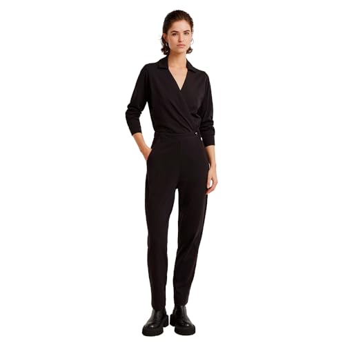 KAFFE Kvinnors Jumpsuit långärmad turtleneck breda ben dragsko midja dam, Svart djup, S