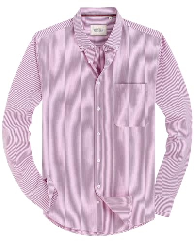 Alimens & Gentle Solid Oxford-skjorta för män långärmad klänning skjorta arbete vardaglig button-down-skjortor med ficka, Randig – rosa, XL