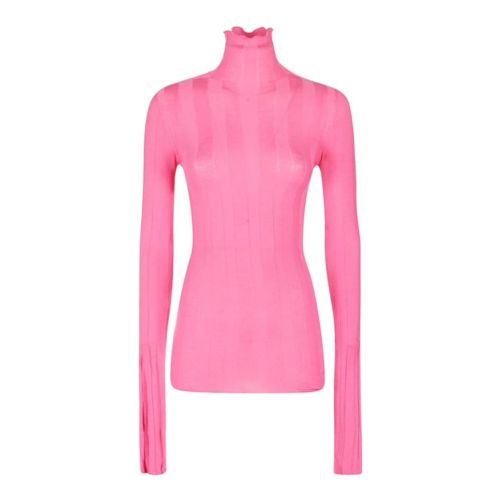 Sportmax, Klänningar , Dam, L, Polyester, Rosa hög hals långärmad topp