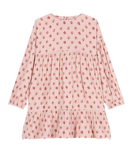 Petit Bateau långärmad klänning för flickor, Rosa Sienna/flerfärgad, 8 År