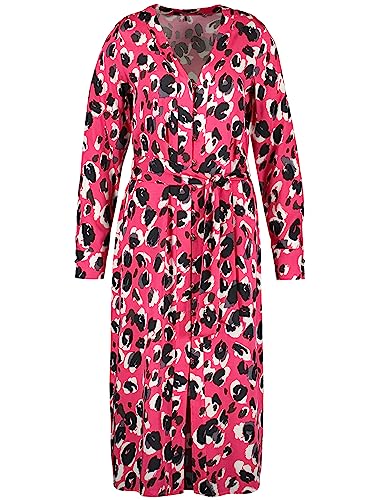 Taifun Midiklänning för kvinnor med knytskärp, lång ärm, manschetter, klänning, långärmad kort midiklänning, djurtryck, vadlång, Lysande rosa mönstrad, 44