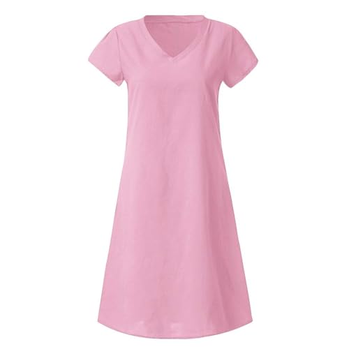 Dam överdimensionerad v-ringad skjorta klänning långärmad sommar ledig, Rosa, 5XL