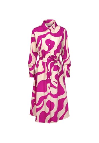 Taifun Midiklänning för kvinnor med knytskärp, lång ärm, manschetter, klänning, långärmad kort midiklänning, djurtryck, vadlång, Lysande rosa mönstrad, 42
