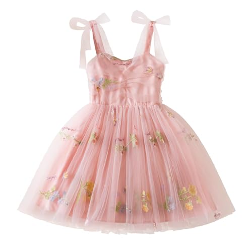 JiAmy Regnbågsklänningar för flickor volang långärmad klänning barn paljetter ribbad stickad tyllkjol för 1-6 år gammal, Rosa rem blomma, 5 - 6 år