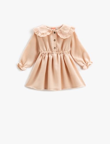 Koton Babygirl klänning Peter Pan Neck Långärmad elastisk manschett knapp detalj, Rosa (280), 12-18 månader