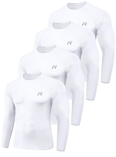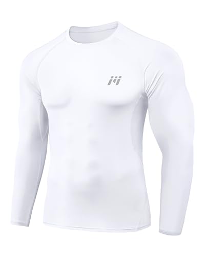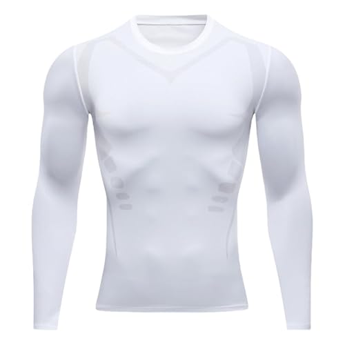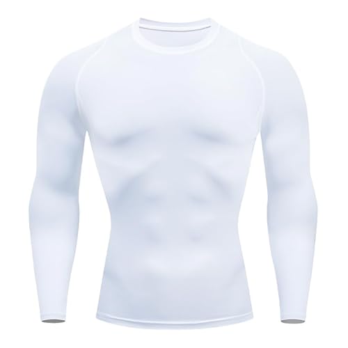 Smatstyle kompressionströja herr, funktionell skjorta, långärmad snabbtorkande kompressionsportskjorta, ventilerande löpartröja för fitness, Vit, XL