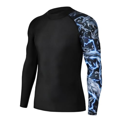 SLIMBELLE Rashguard herr långärmad UPF 50+ UV-skyddströjor kompressionströja herr snabbtorkande andas surfing fiske vandring topp, Blå varg, 3XL