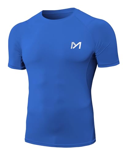 MEETYOO Kompressionströja herr, funktionell skjorta kort/långärmad fitnessskjorta män, sportskjorta, ventilerande löpartröja för löpning, jogging, sport, gym, blå, XL