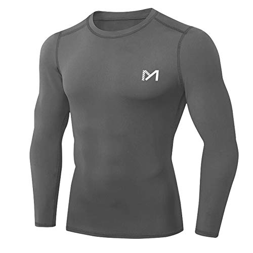 MEETYOO Herr kompressionströja funktionell tröja långärmad t-shirt, Grå fleece, XXL