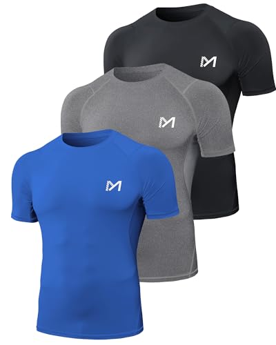 MEETYOO Kompressionströja herr, funktionell skjorta kort/långärmad fitnessskjorta män, sportskjorta, ventilerande löpartröja för löpning, jogging, sport, gym, Svart + blå + grå, M