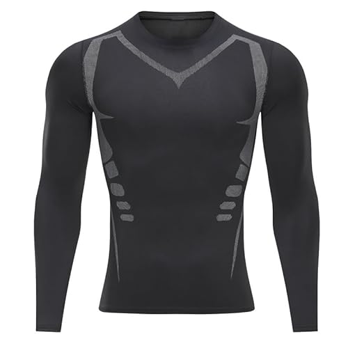 MEETWEE Kompressionströja herr, långärmad funktionell skjorta, sportskjorta, ventilerande fitnessskjorta, män, träningströja, löptröja för löpning, jogging, gym (svart-b, XL), Black-B, XL