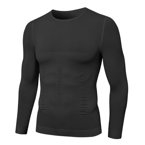 MEETYOO Shapewear kompressionströja herr långärmad body shaper sportskjorta snäva underkläder undertröja funktionell tröja andas fitness bodybuilding män topp, svart, M