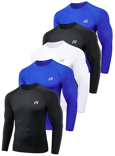 MEETYOO Kompressionströja herr, funktionell skjorta kort/långärmad fitnessskjorta män, sportskjorta, ventilerande löpartröja för löpning, jogging, sport, gym, Svart + blå + grå, XXL