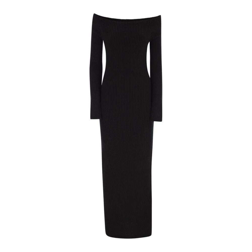 Max Mara, Klänningar , Dam, S, Ribbstickad Off-Shoulder Långärmad Maxiklänning