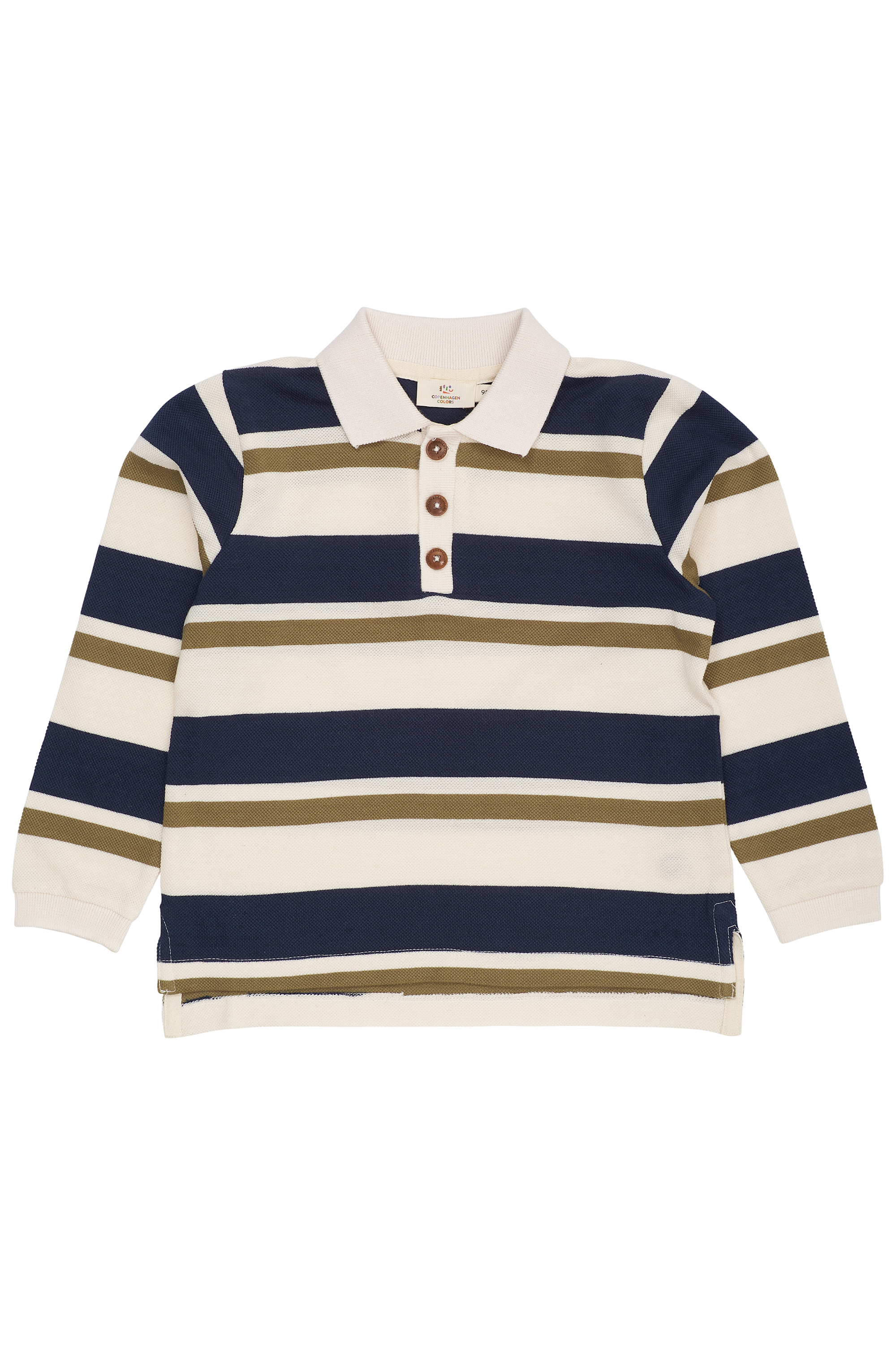 Copenhagen Colors GOTS Randig Långärmad Pikétröja Green Green 98 cm Grön 98 cm man
