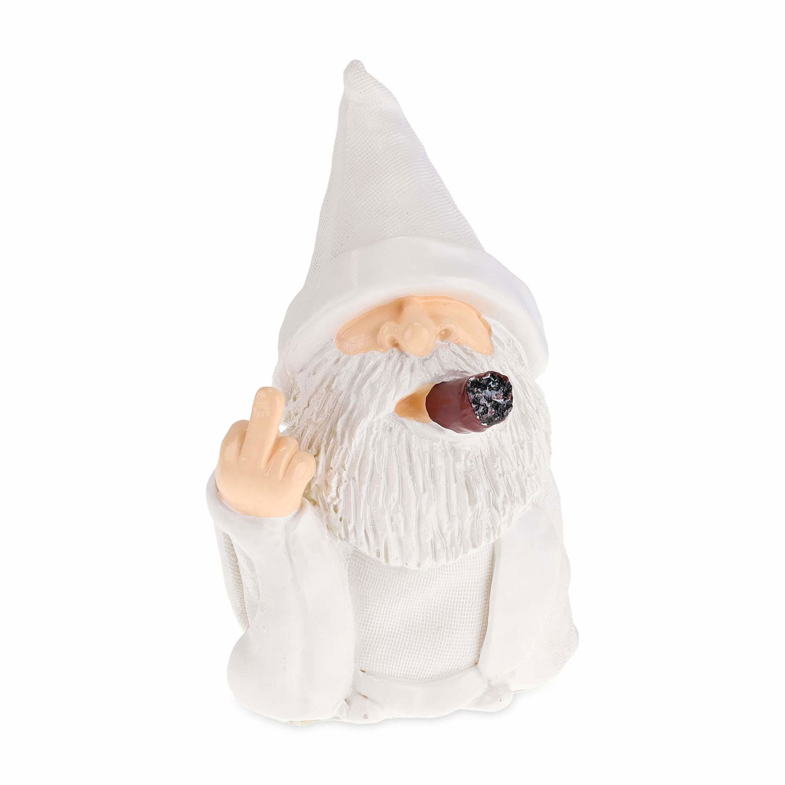 Vit trädgårdstomte med långfinger