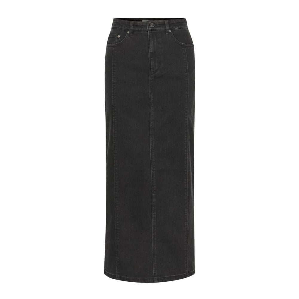 Gestuz, Kjolar , Dam, S, Denim, Mörkgrå Tvättad Denim Långkjol