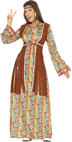 FIESTAS GUIRCA Blommig Hippie Dräkt för kvinnor - Långklänning 70-talet - Flowe Power 60-talsdräkt för kvinnor, storlek S 36–38