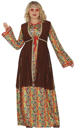 FIESTAS GUIRCA Blommig Hippie Dräkt för kvinnor - Långklänning 70-talet - Flowe Power 60-talsdräkt för kvinnor, storlek XL 46–48