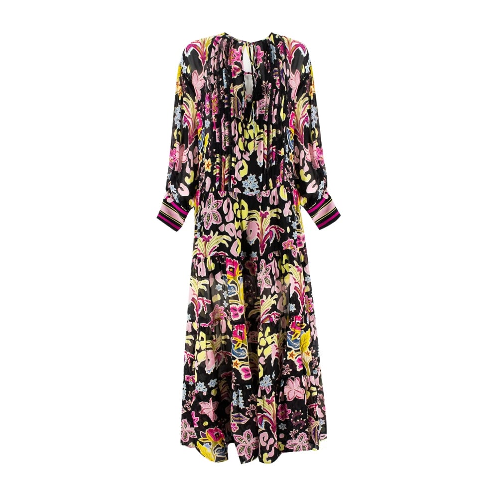 Essentiel Antwerp, Klänningar , Dam, M, Svart Blommig Långklänning i Siden
