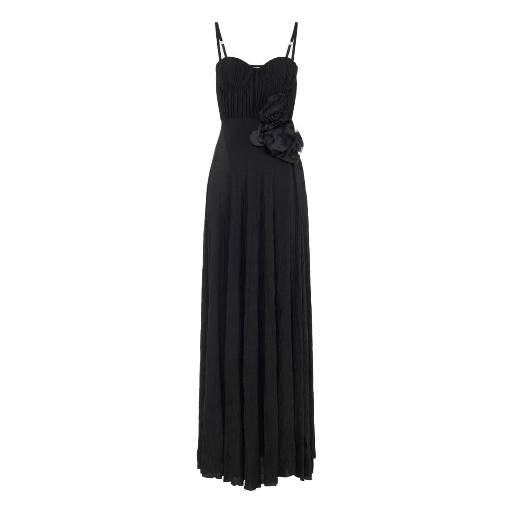 Elisabetta Franchi, Klänningar , Dam, L, Polyester, Svart Blommig Långklänning