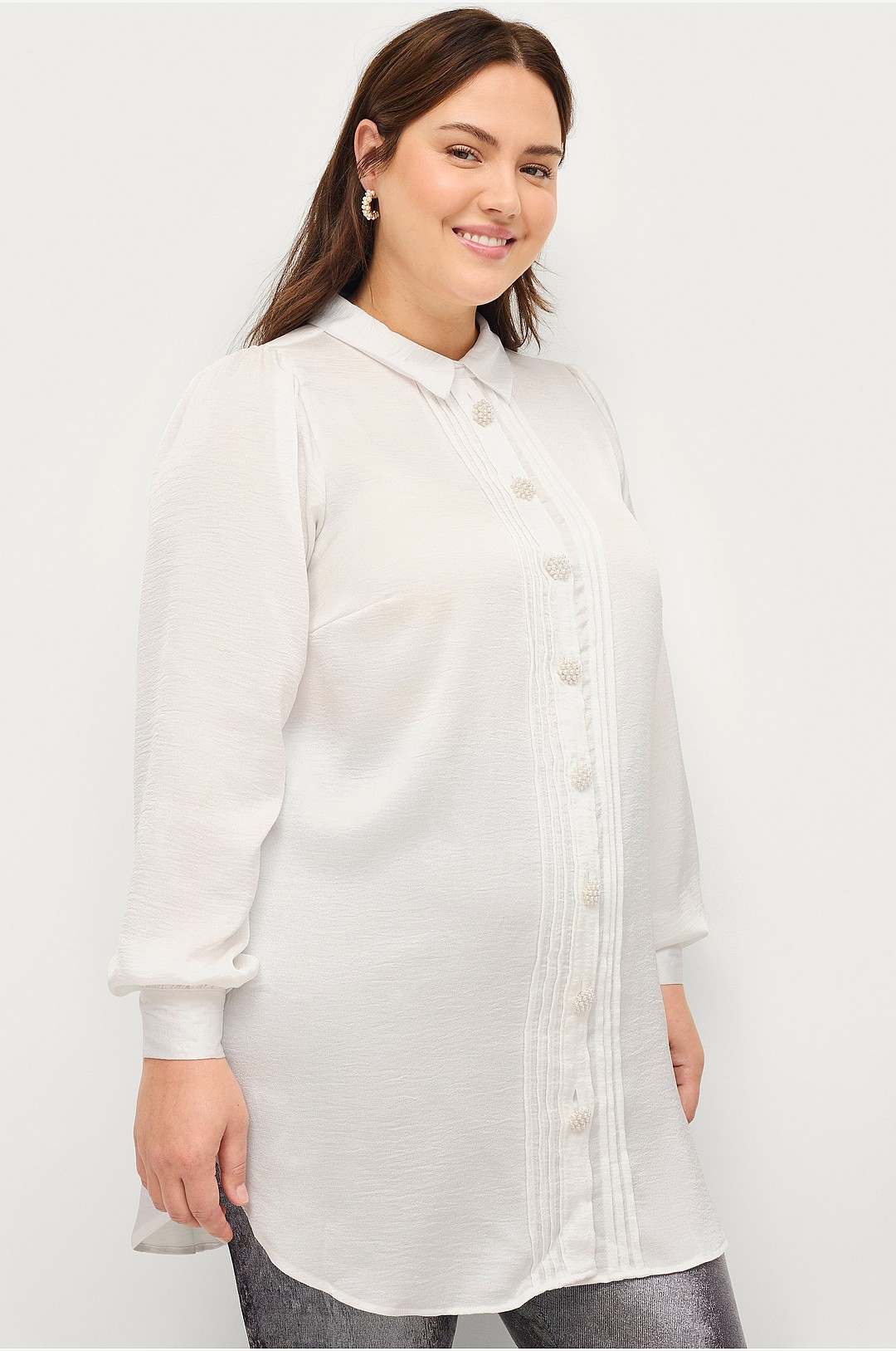 Zizzi - Långskjorta mSaraly L/S Long Shirt - Vit