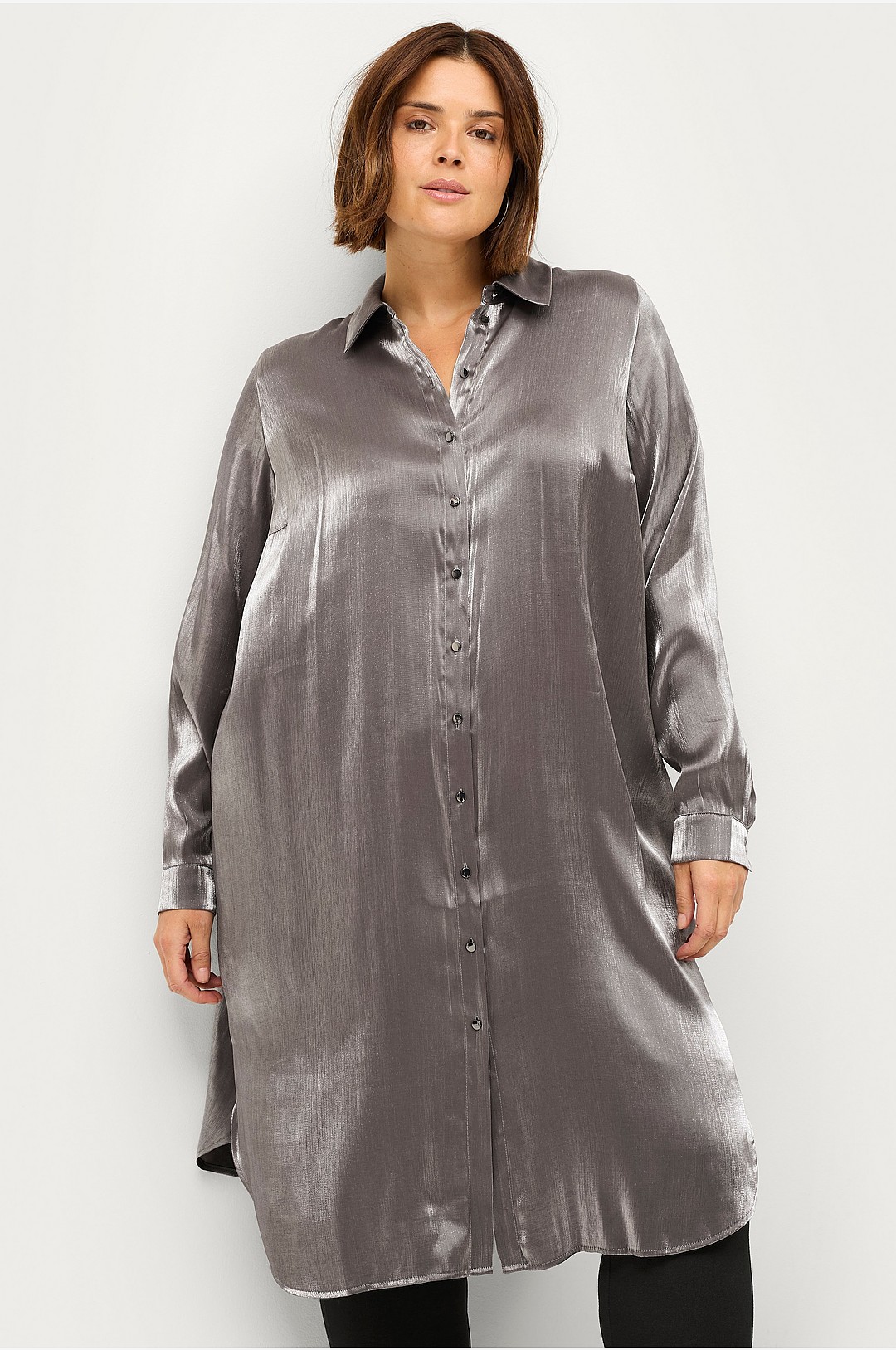 Zizzi - Långskjorta mFanny L/S Long Shirt - Silver