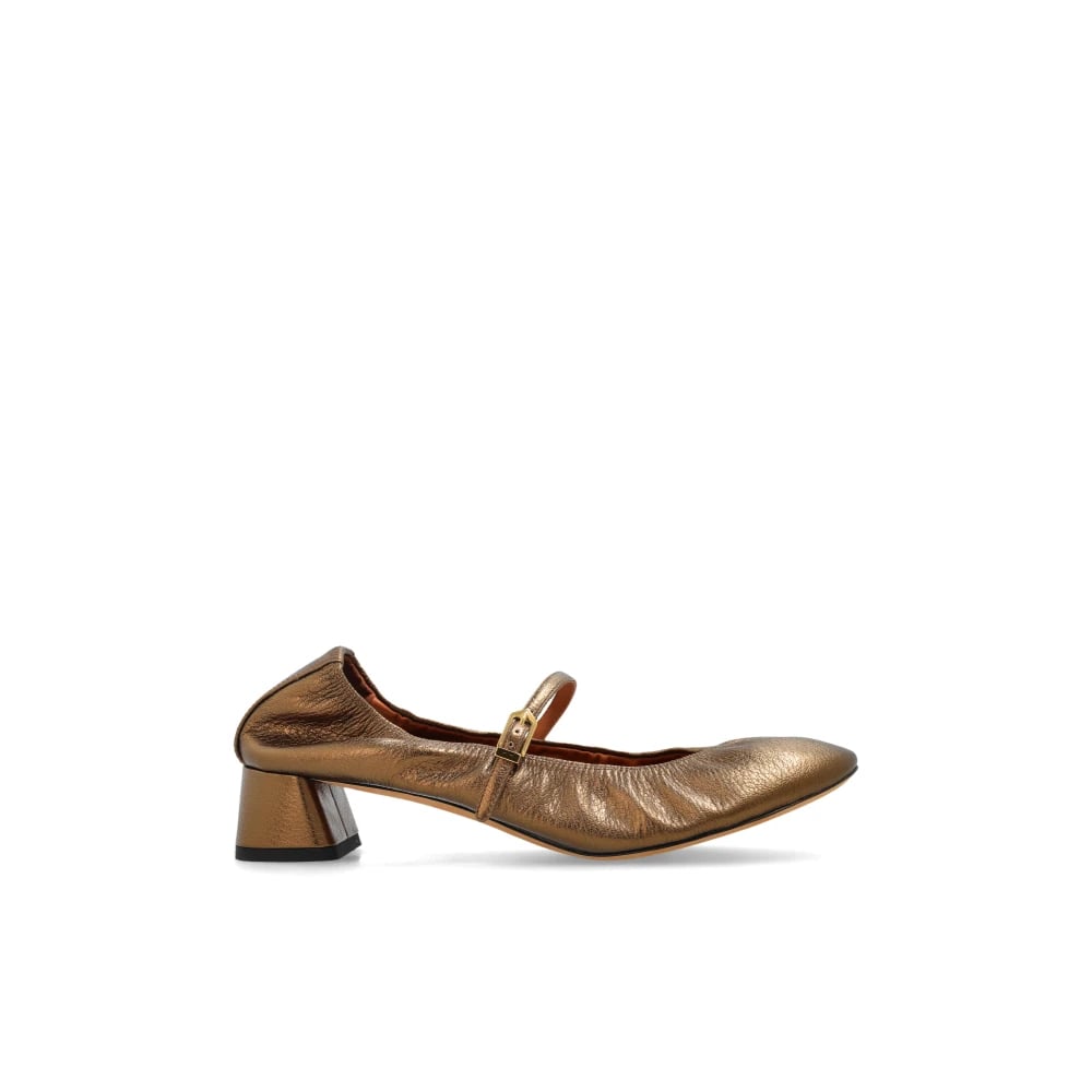 Lanvin, Skor , Dam, 38 EU, Läder, Ballerinasko i metalliskt läder
